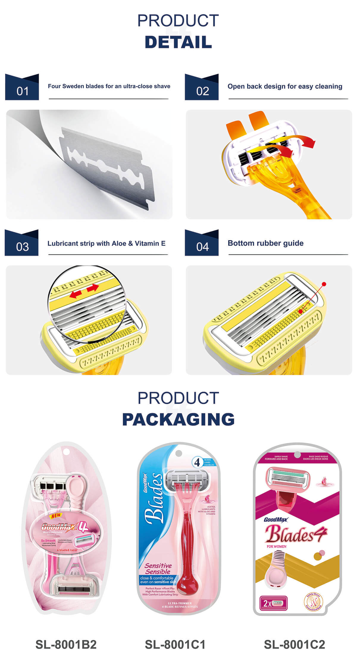 Jednorazový holiaci strojček na jedno použitie z nehrdzavejúcej ocele pre ženy so 4 čepeľami SL-8001